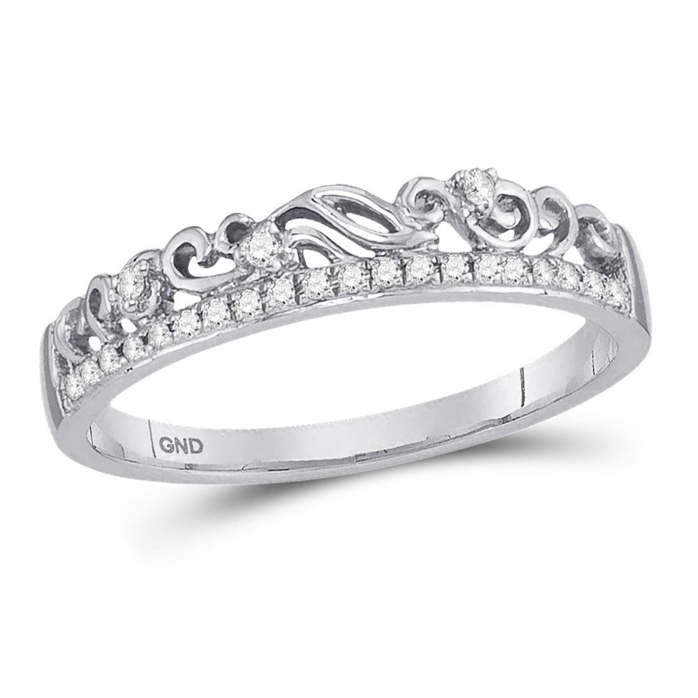 10kt White Gold Womens Round Diamond Stackable Band Ring 1/12 Cttw.