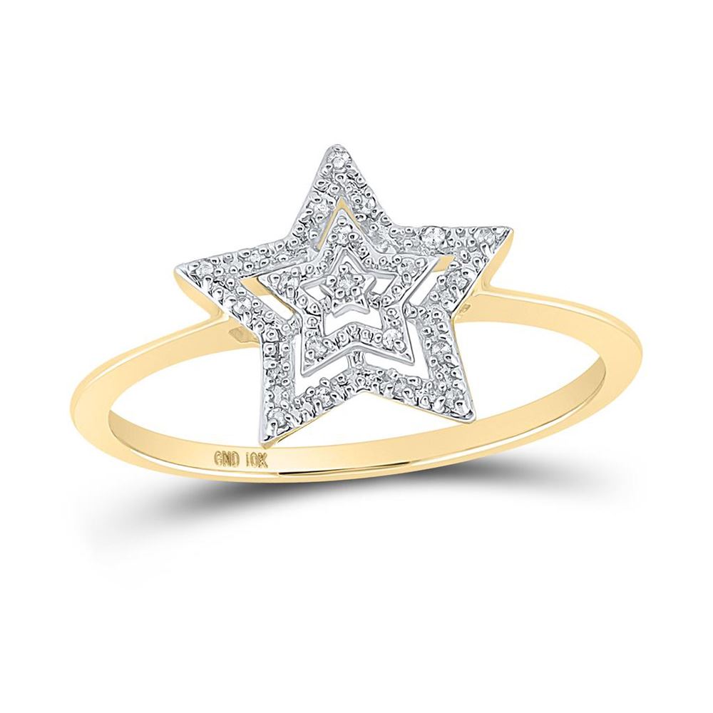10kt Yellow Gold Womens Round Diamond Star Ring 1/20 Cttw.