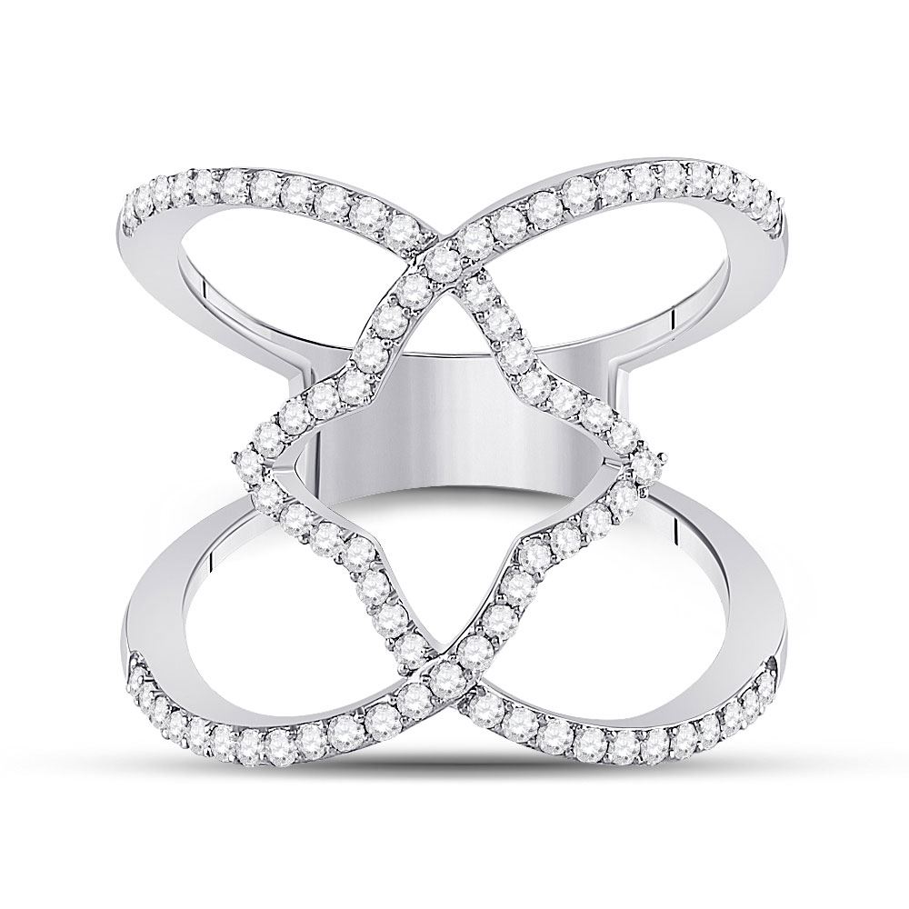 14kt White Gold Womens Round Diamond Starburst Negative Space Ring 1/2 Cttw.