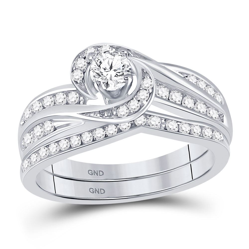 REF-53K9Y ---- Round Diamond Swirl Bridal Wedding Ring Band Set 1/2 Cttw 10k White Gold
