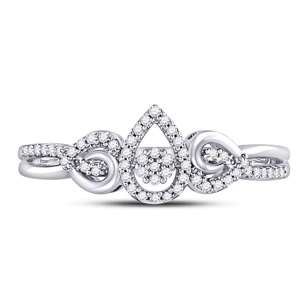10kt White Gold Womens Round Diamond Teardrop Curl Cluster Ring 1/10 Cttw.