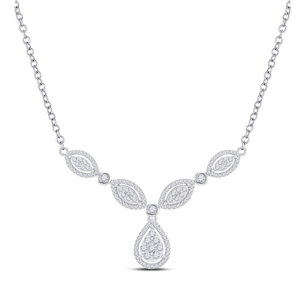 10kt White Gold Womens Round Diamond Teardrop Necklace 3/4 Cttw.