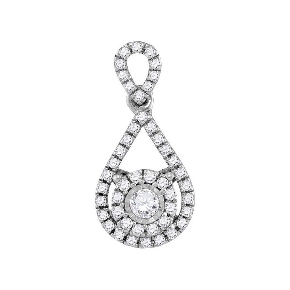 10kt White Gold Womens Round Diamond Teardrop Pendant 1/4 Cttw.