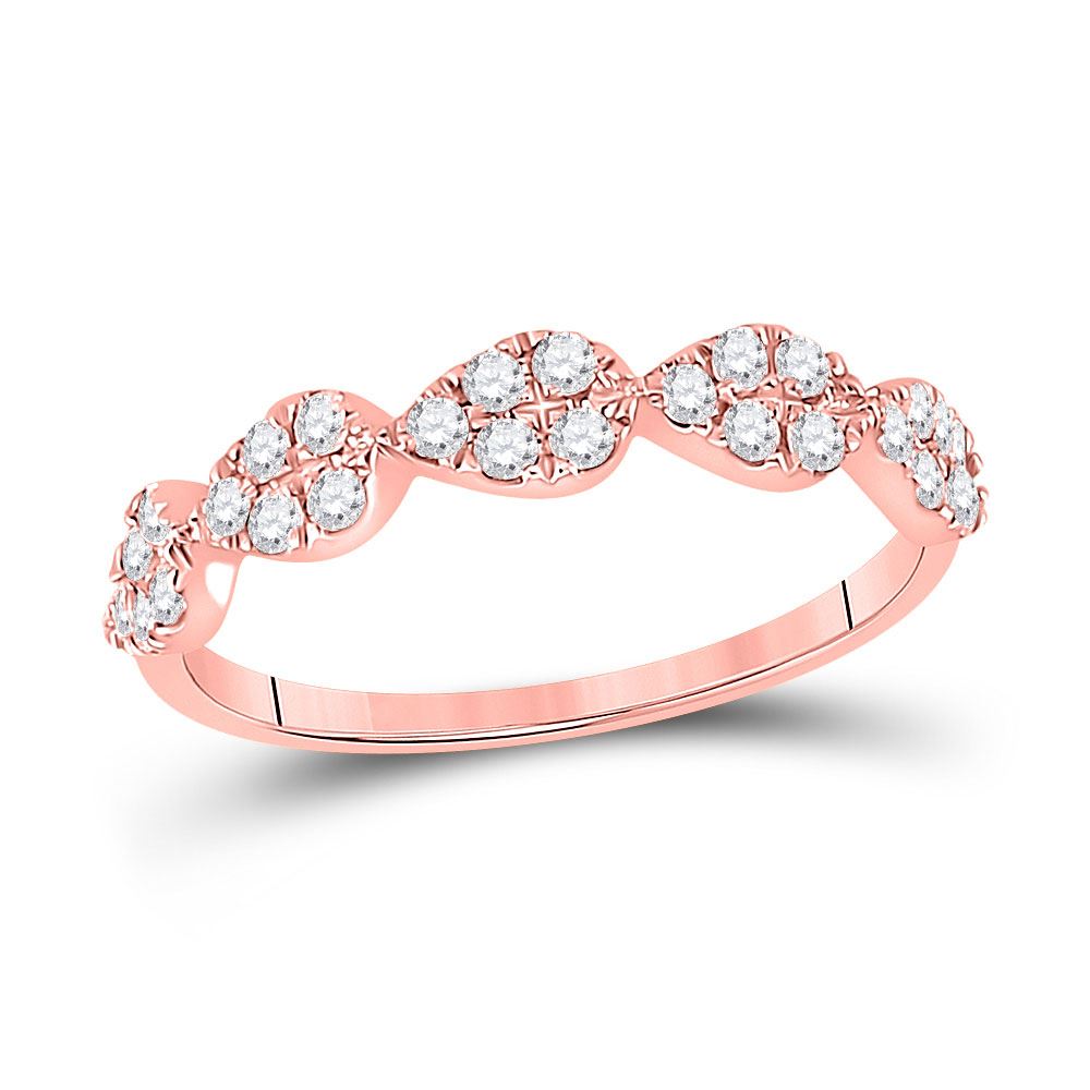 10kt Rose Gold Womens Round Diamond Teardrop Stackable Band Ring 1/3 Cttw.
