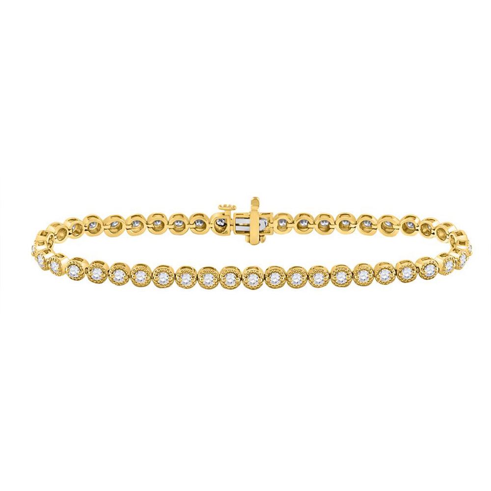 14kt Yellow Gold Womens Round Diamond Tennis Bracelet 2 Cttw.