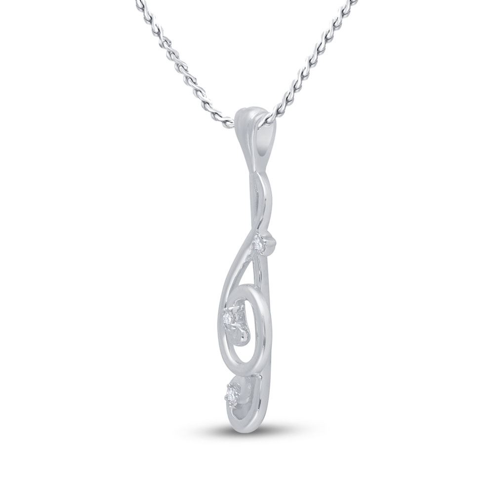 Round Diamond Treble Clef Music Note Pendant 1/20 Cttw 10KT White Gold