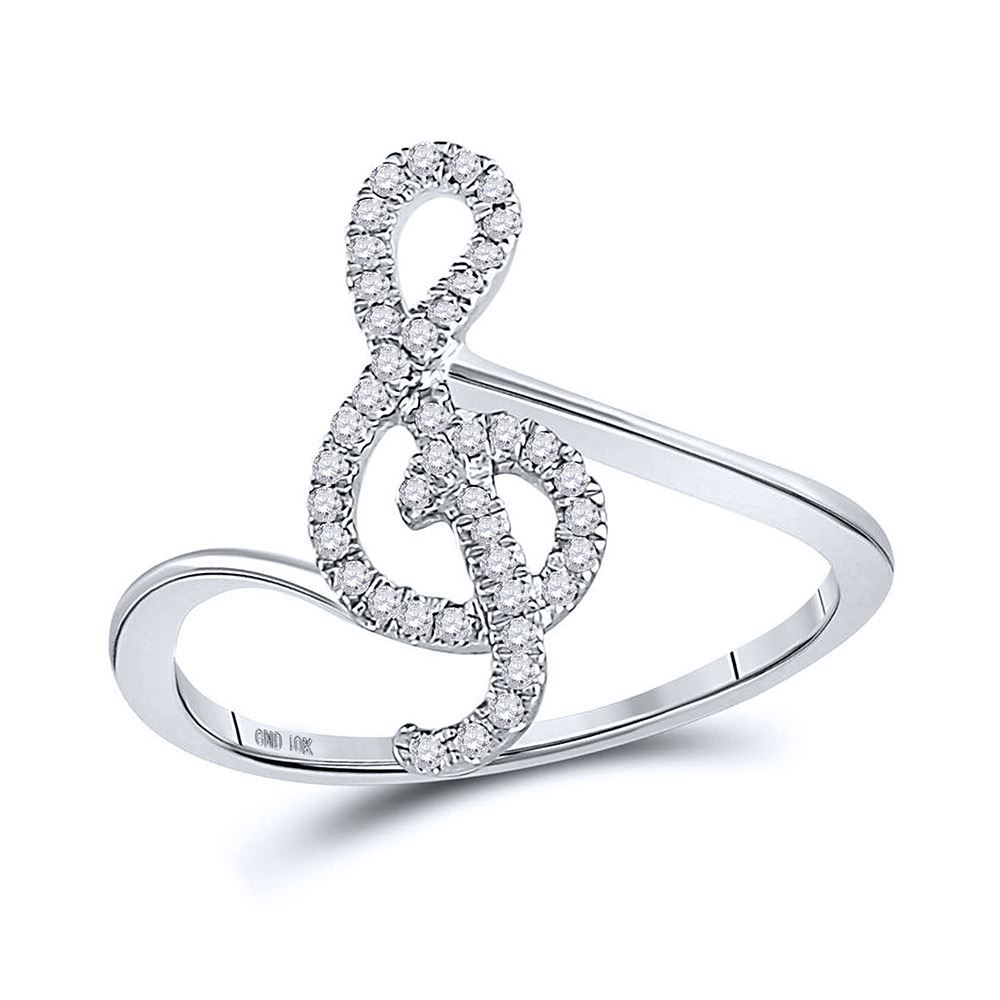 10kt White Gold Womens Round Diamond Treble Clef Music Note Ring 1/6 Cttw.
