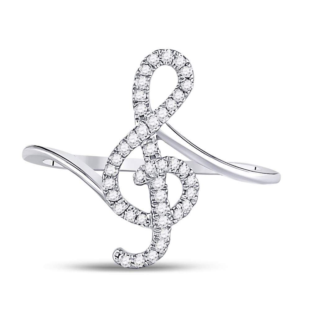 Round Diamond Treble Clef Music Note Ring 1/6 Cttw 10KT White Gold