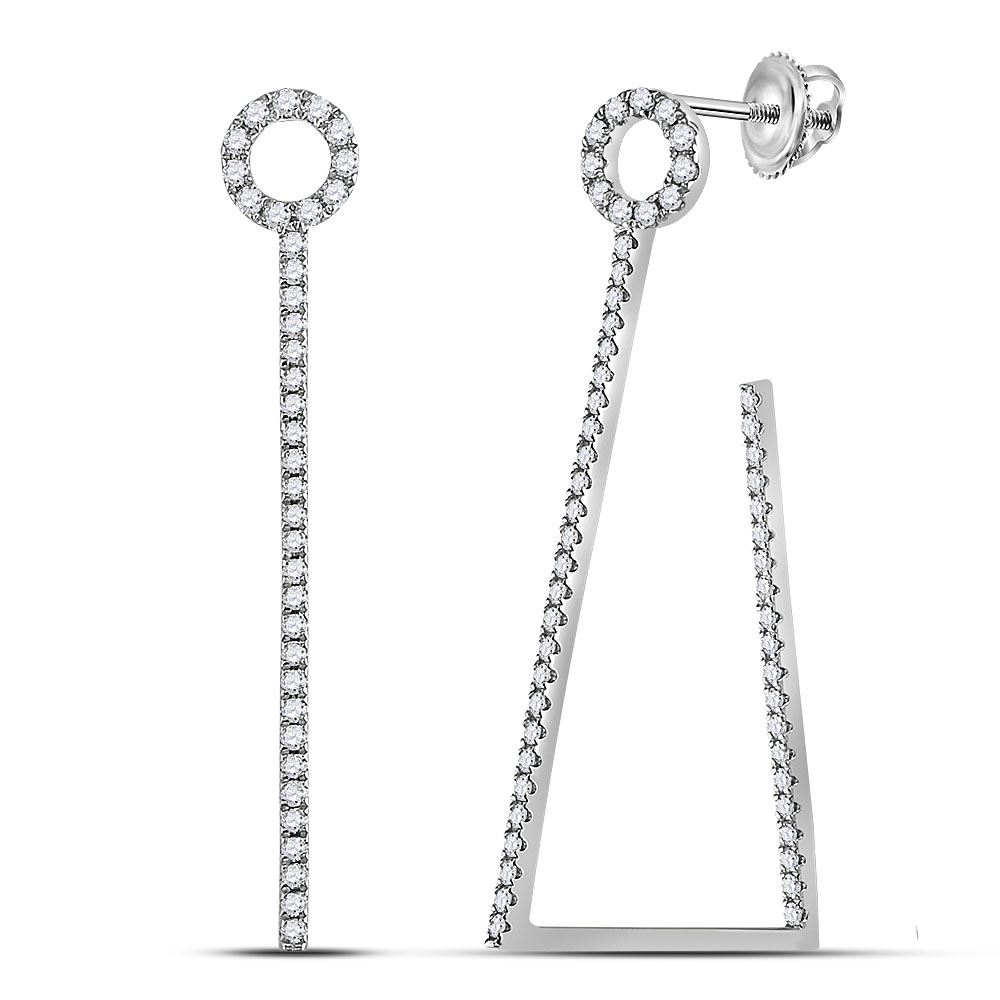 14kt White Gold Womens Round Diamond Triangular Hoop Earrings 3/4 Cttw.