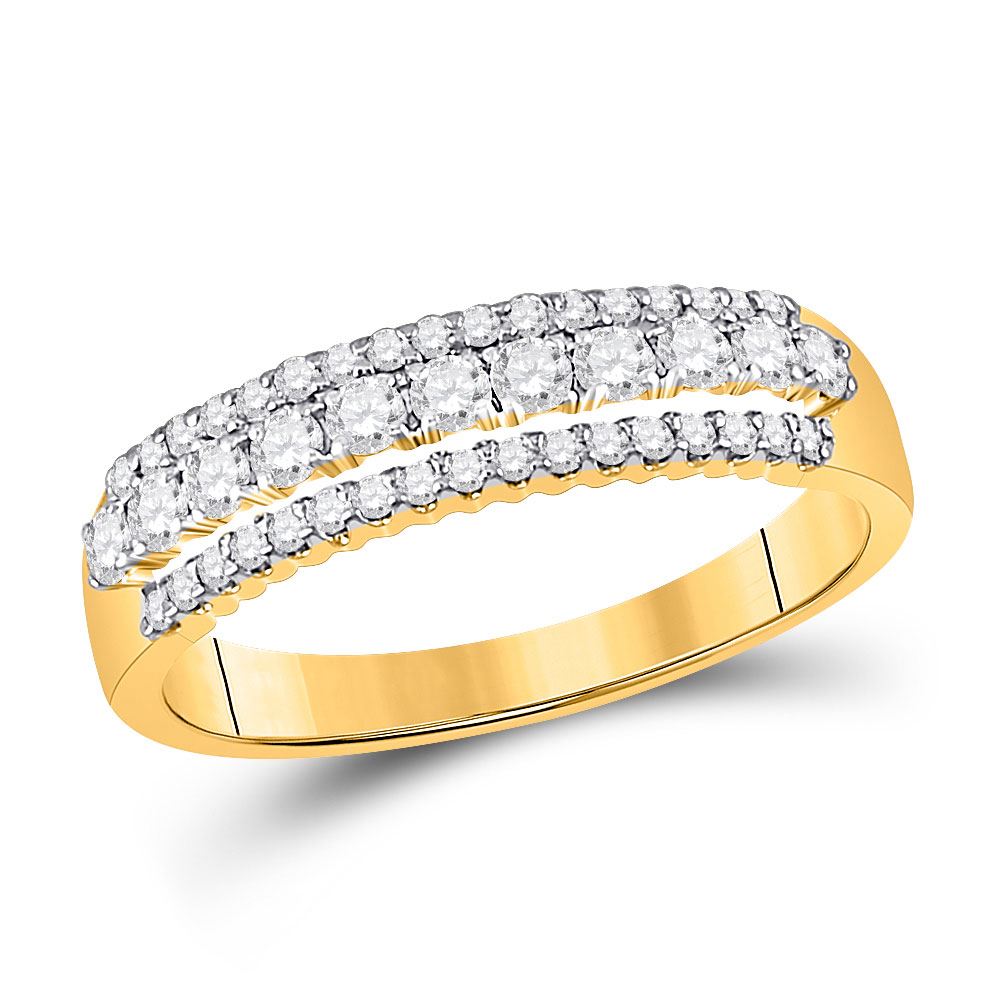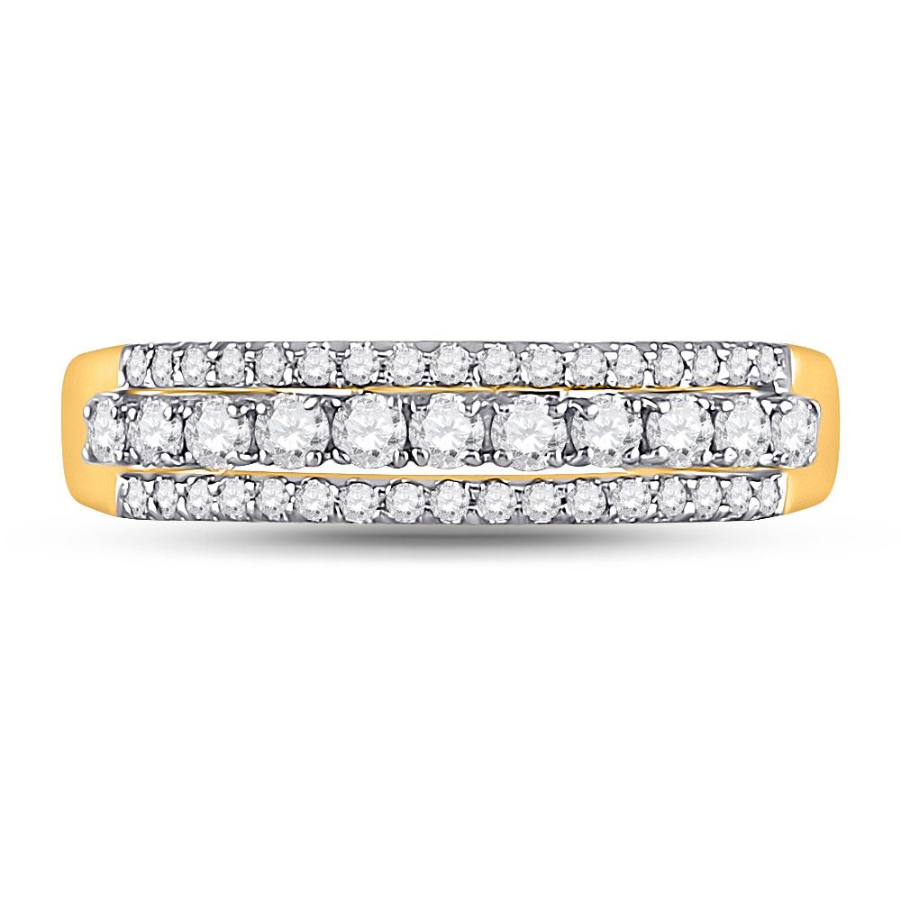 Round Diamond Triple Row Band Ring 1/2 Cttw 14KT Yellow Gold