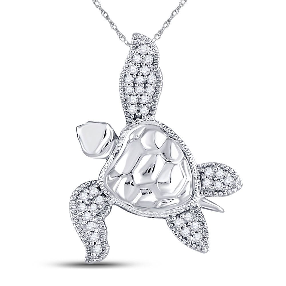 Round Diamond Turtle Tortoise Animal Pendant 1/10 Cttw 10KT White Gold