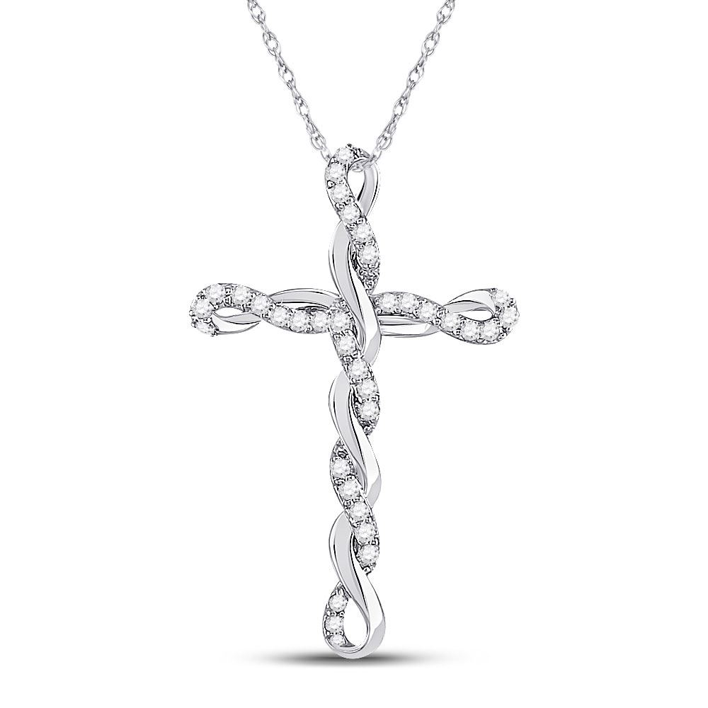 10kt White Gold Womens Round Diamond Twist Cross Pendant 1/4 Cttw.