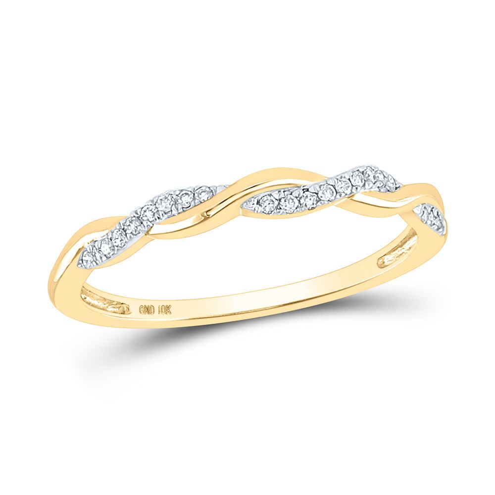 10kt Yellow Gold Womens Round Diamond Twist Stackable Band Ring 1/12 Cttw.
