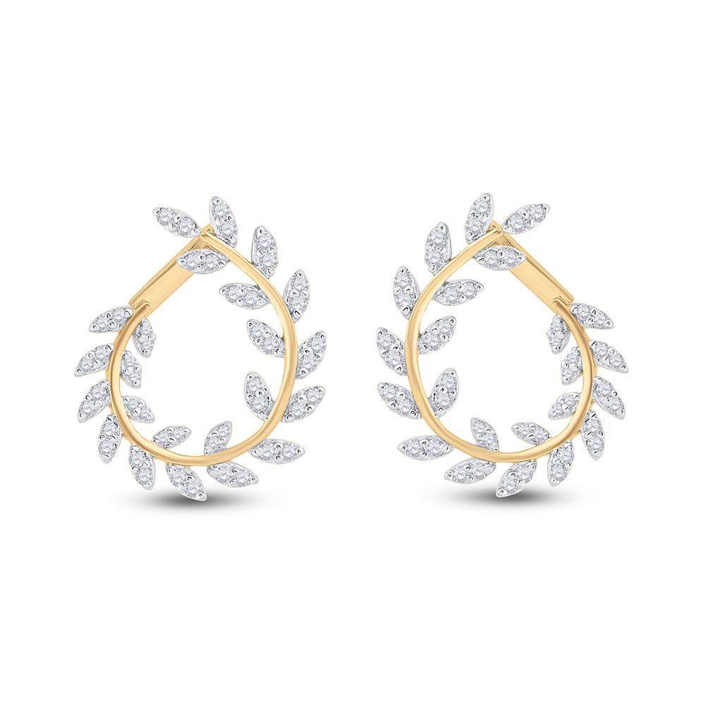 Round Diamond Twist Vine Hoop Earrings 1 Cttw 14KT Yellow Gold