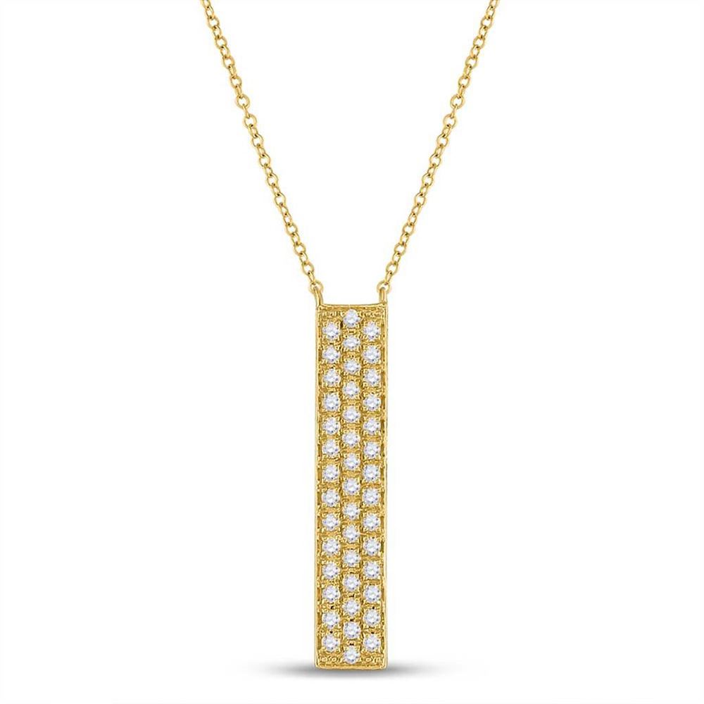 10kt Yellow Gold Womens Round Diamond Vertical Bar Necklace 1/4 Cttw.