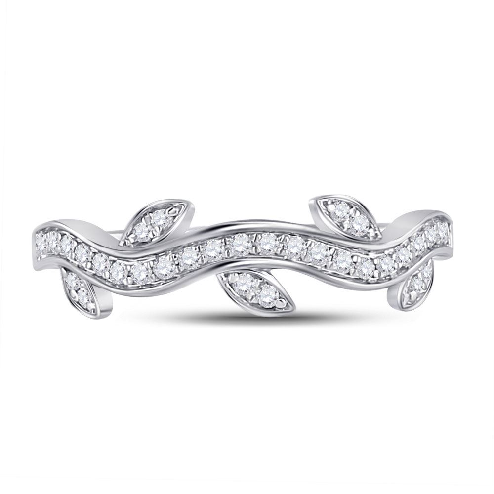 10kt White Gold Womens Round Diamond Vine Floral Stackable Band Ring 1/6 Cttw.
