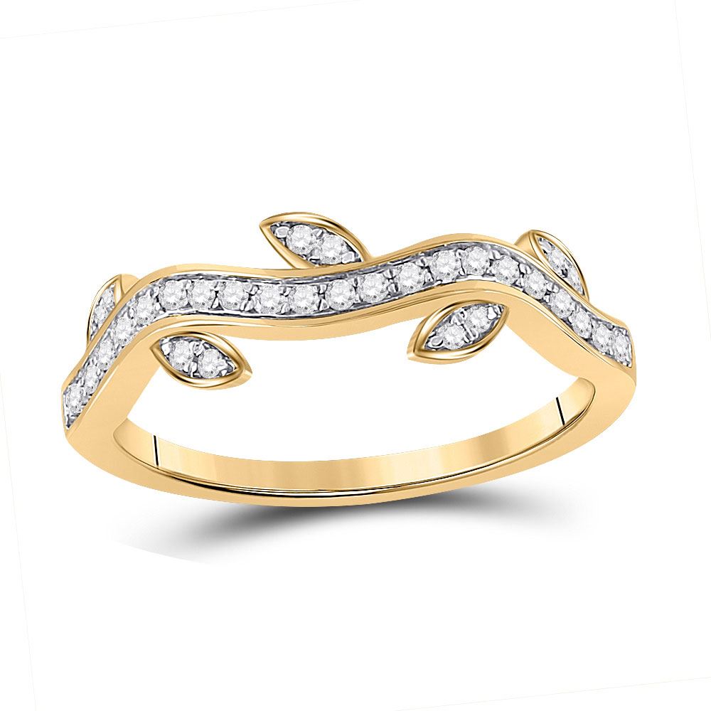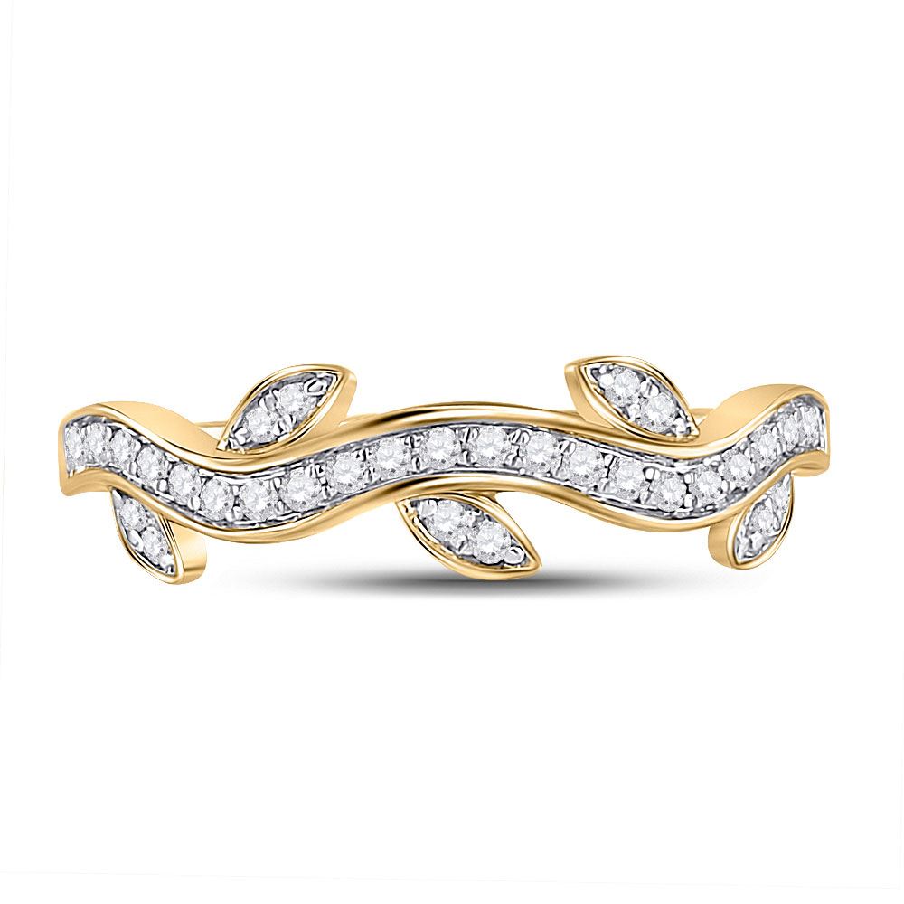 10kt Yellow Gold Womens Round Diamond Vine Stackable Band Ring 1/6 Cttw.