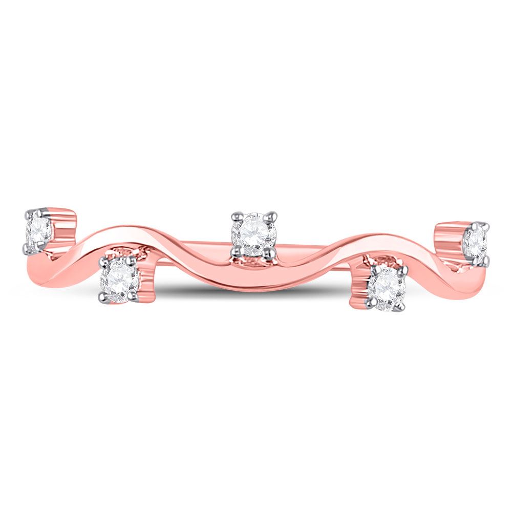 10kt Rose Gold Womens Round Diamond Wave Stackable Band Ring 1/8 Cttw.