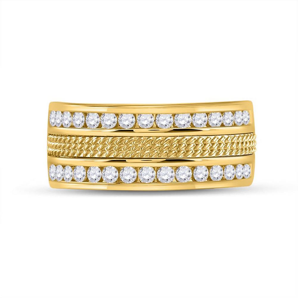 14kt Yellow Gold Mens Round Diamond Wedding Band Ring 1 Cttw.