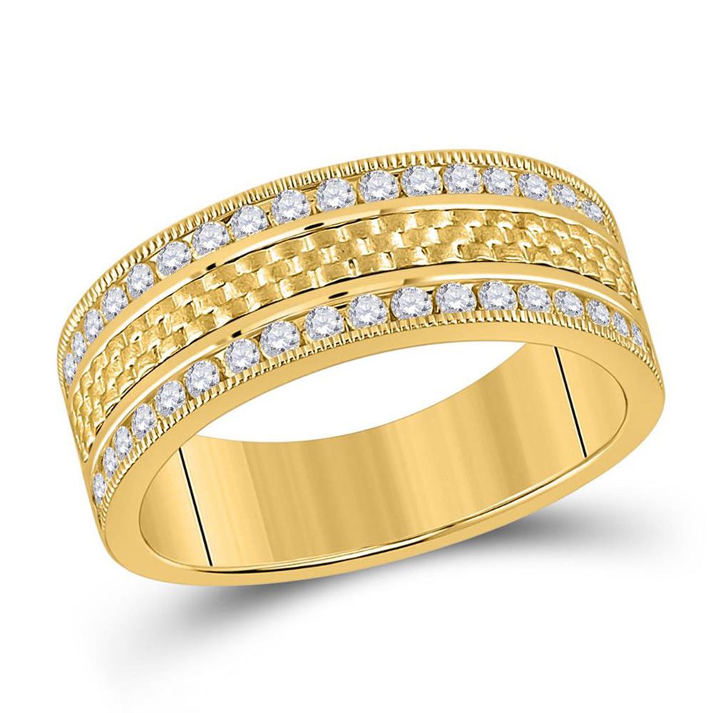 14kt Yellow Gold Mens Round Diamond Wedding Band Ring 3/4 Cttw.