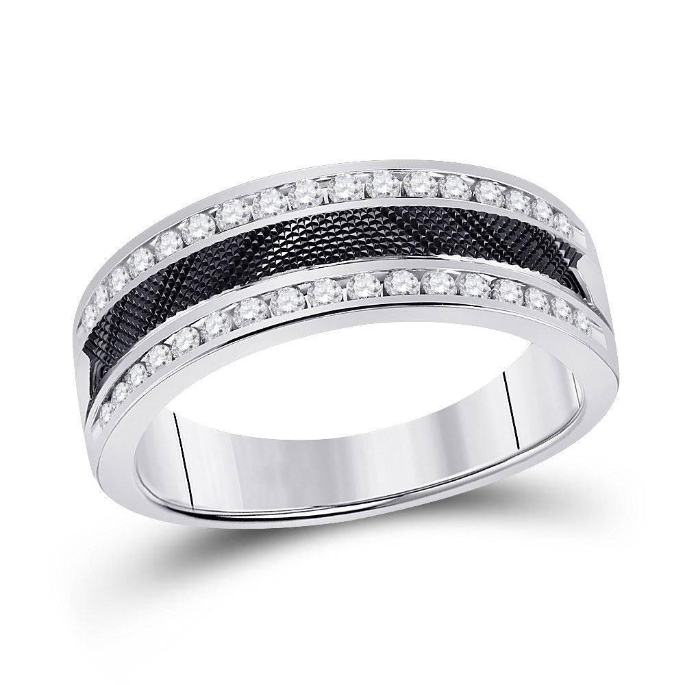 14kt White Gold Mens Round Diamond Wedding Double Row Band Ring 1/2 Cttw.