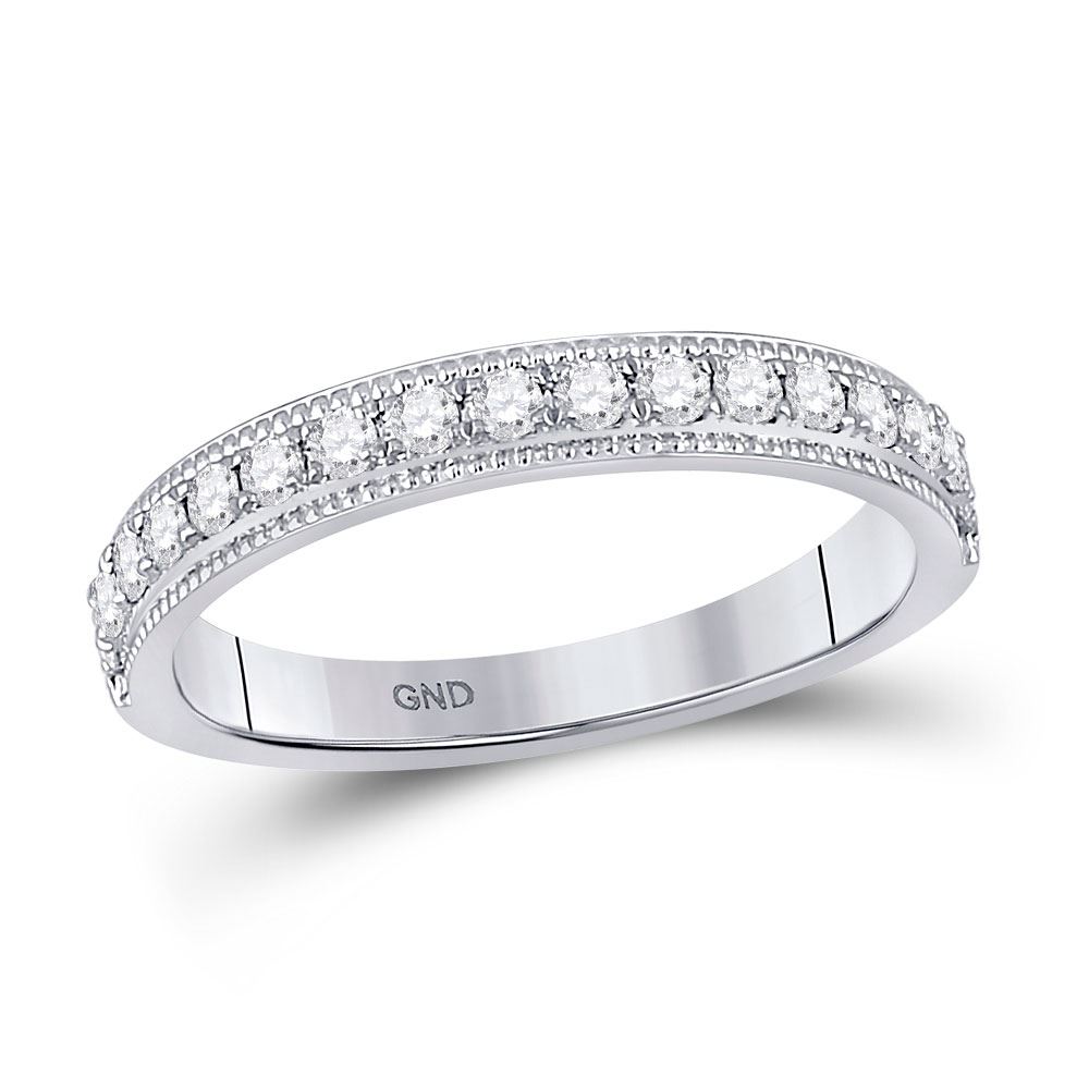14kt White Gold Womens Round Diamond Wedding Single Row Band 1/3 Cttw.