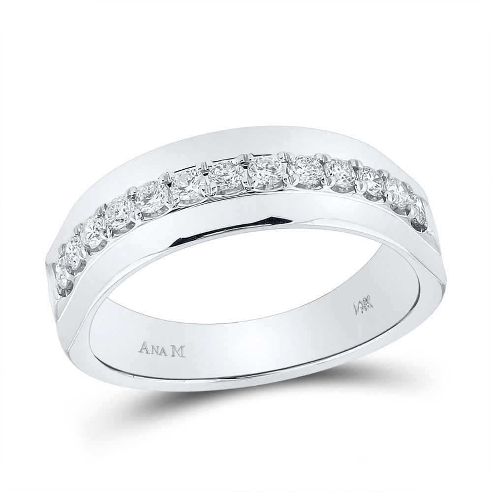 Round Diamond Wedding Single Row Band Ring 1/2 Cttw 14KT White Gold