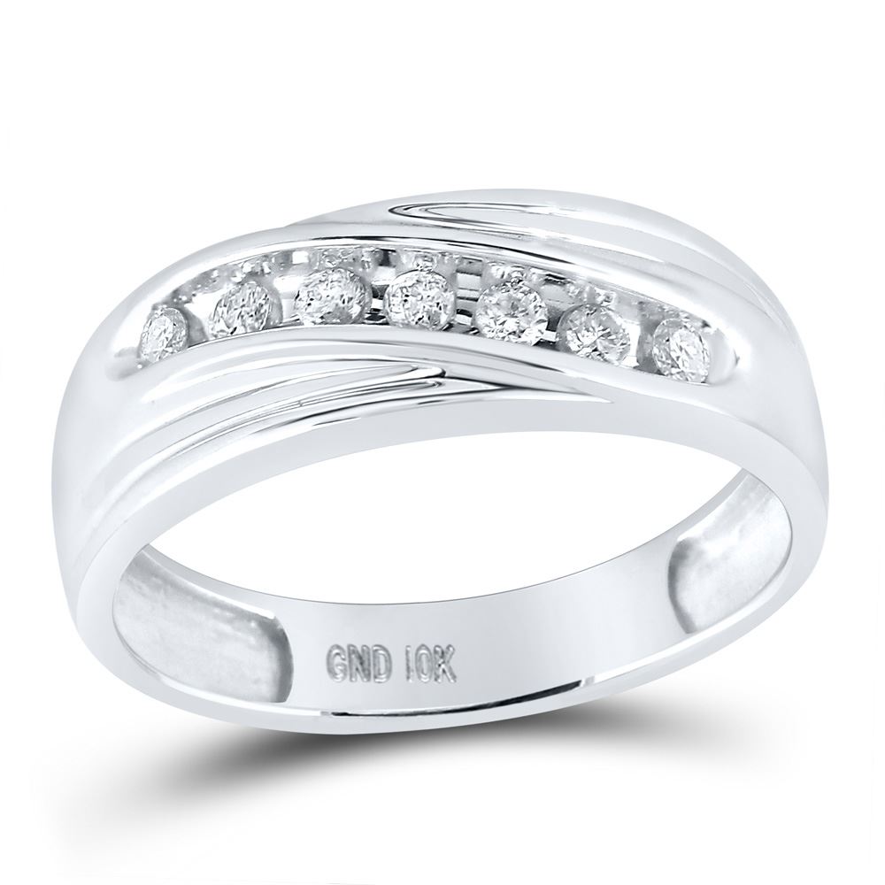 10kt White Gold Mens Round Diamond Wedding Single Row Band Ring 1/4 Cttw.