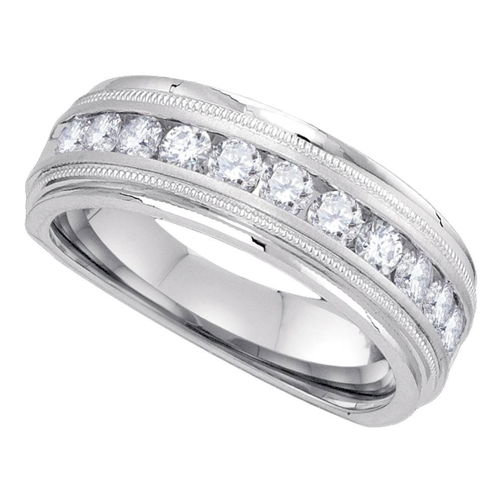 10kt White Gold Mens Round Diamond Wedding Single Row Band Ring 1 Cttw.