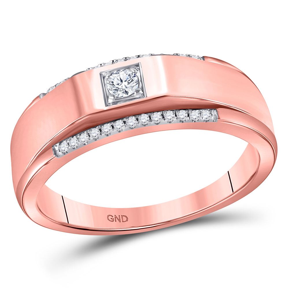 10kt Rose Gold Mens Round Diamond Wedding Solitaire Band Ring 1/6 Cttw.