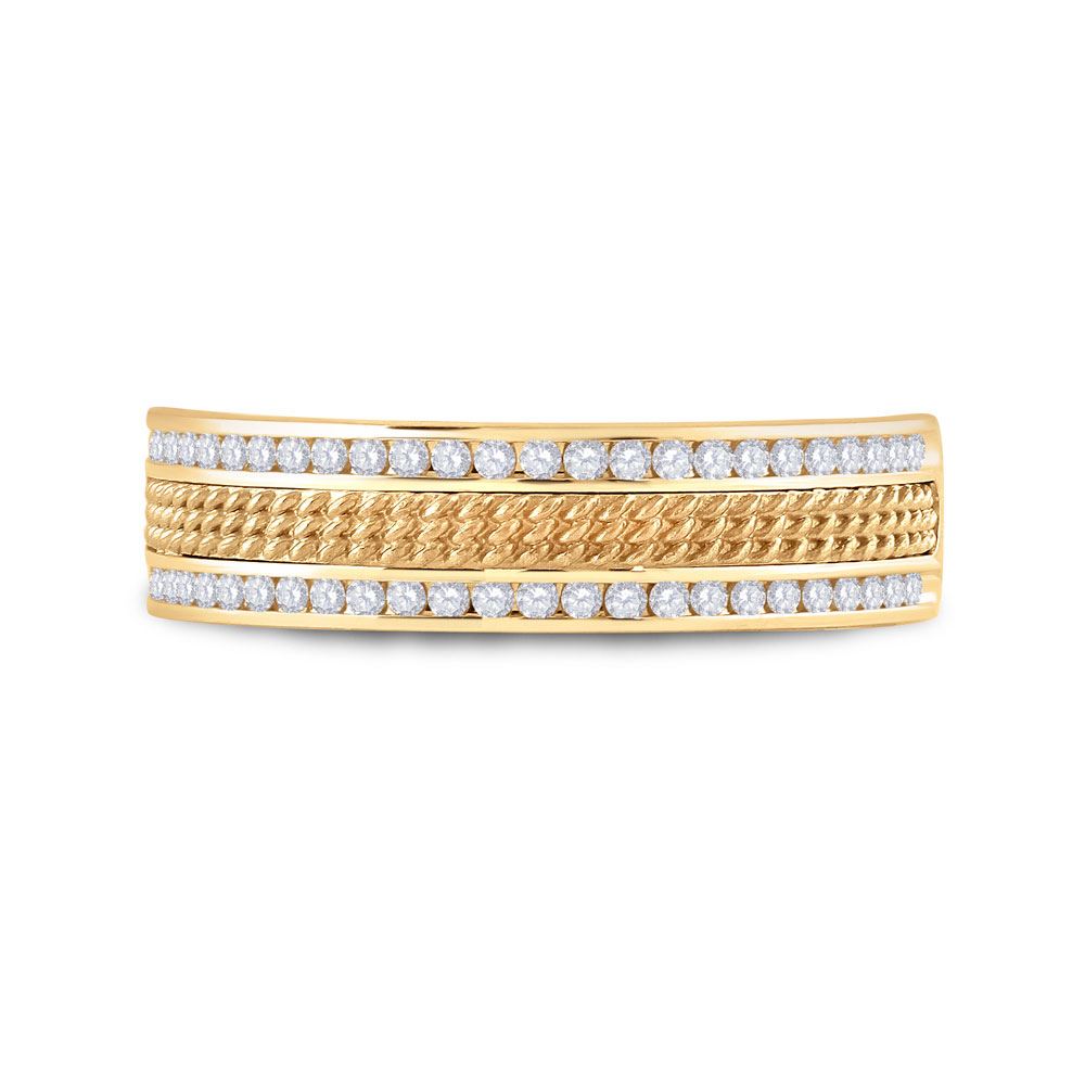 14kt Yellow Gold Mens Round Diamond Wedding Textured Band Ring 1/3 Cttw.