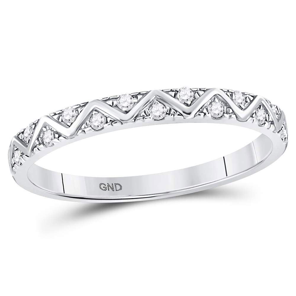 Round Diamond Zigzag Stackable Band Ring 1/10 Cttw 10KT White Gold