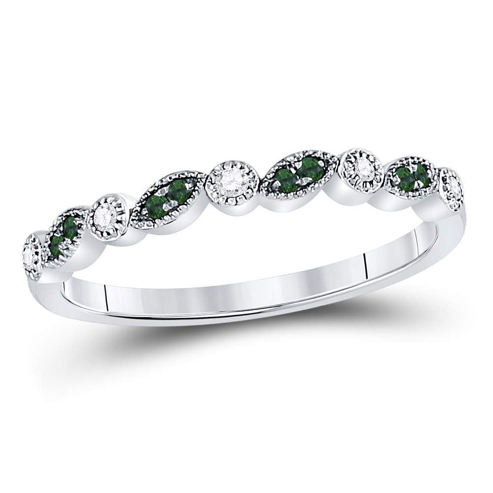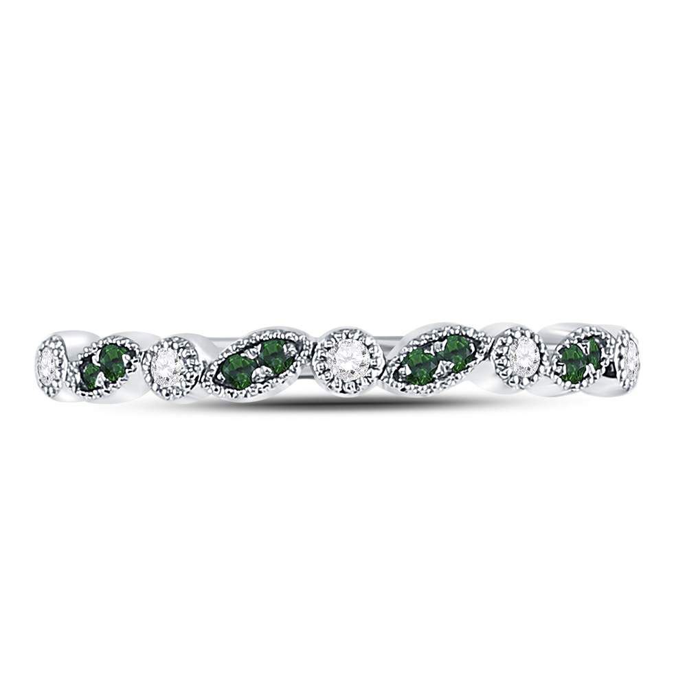 10kt White Gold Womens Round Emerald Diamond Milgrain Stackable Band Ring 1/10 Cttw.