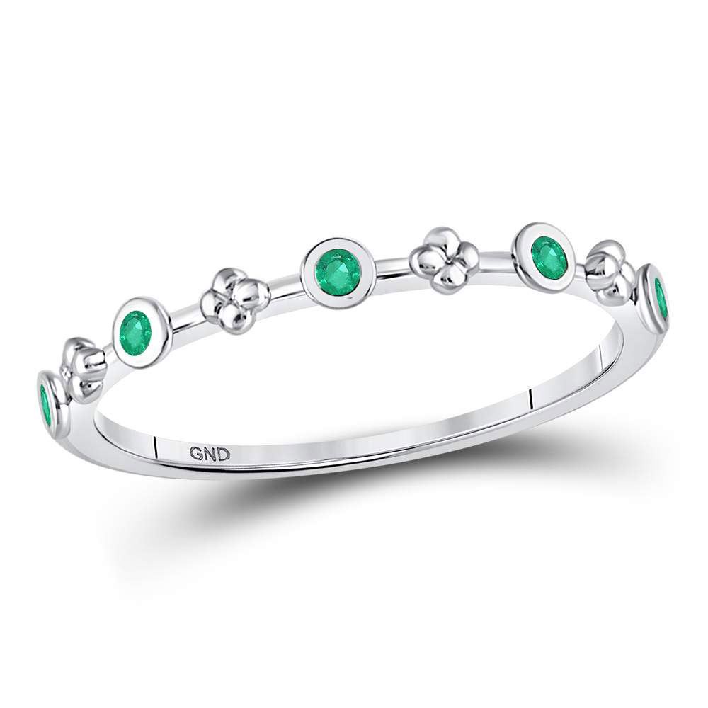 REF-6H4W - SKU: GD128009 ---- Round Emerald Dot Flower Stackable Band Ring 1/12 Cttw 10kt White Gold