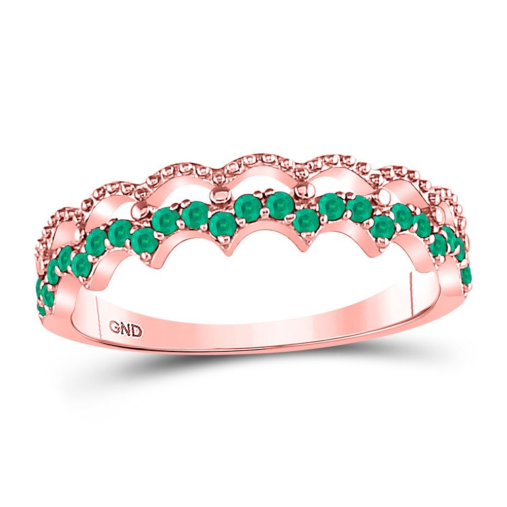 REF-13X6Y - SKU: GD127739 ---- Round Emerald Scalloped Stackable Band Ring 1/4 Cttw 10kt Rose Gold