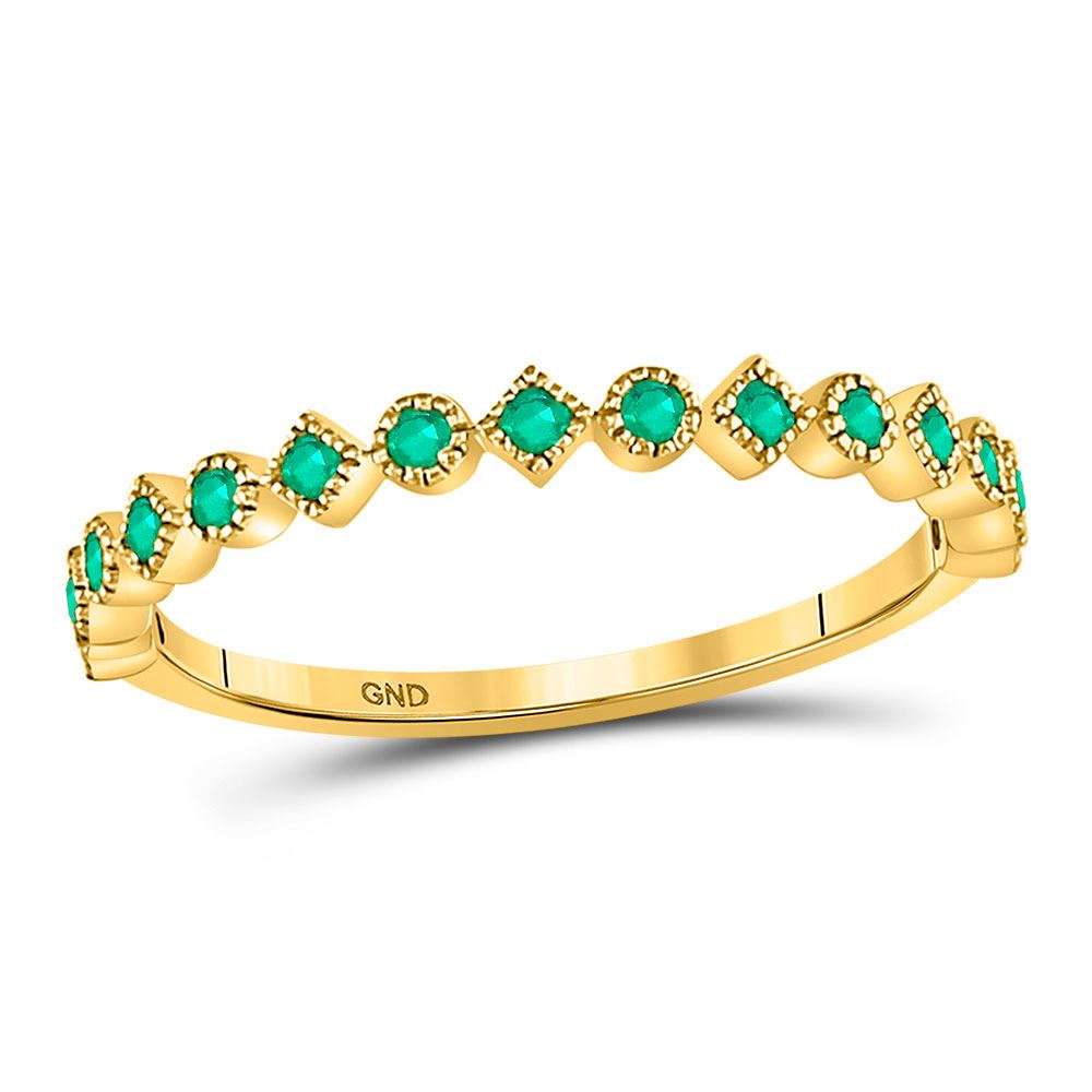 REF-13G6M - SKU: GD128049 ---- Round Emerald Square Dot Stackable Band Ring 1/5 Cttw 10kt Yellow Gold