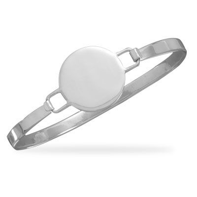 Bangle is 5mm wide with approx. 17x23mm engravable tag. .925 Sterling Silver