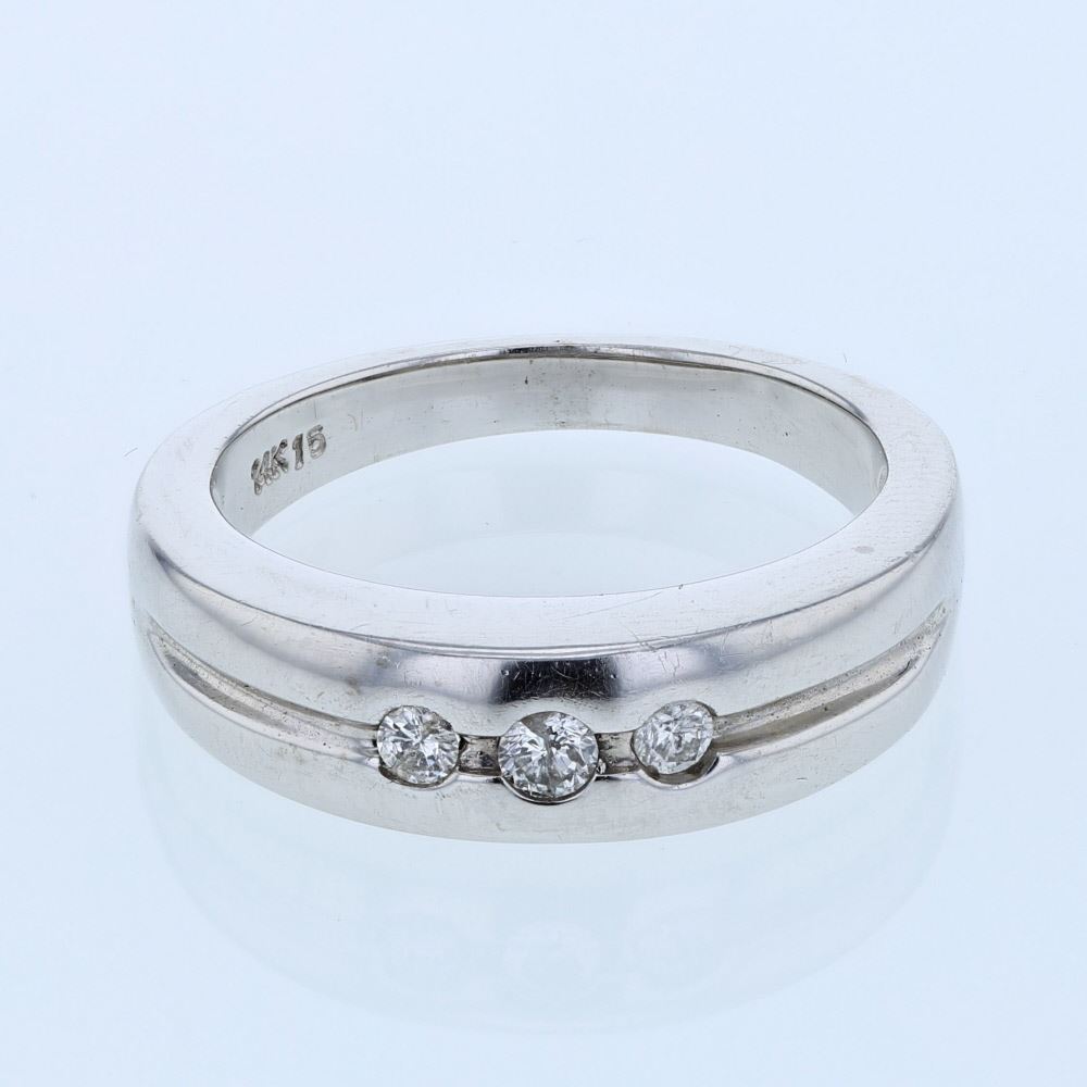 Round Flush-Set Gents Diamond Ring in 14K White Gold