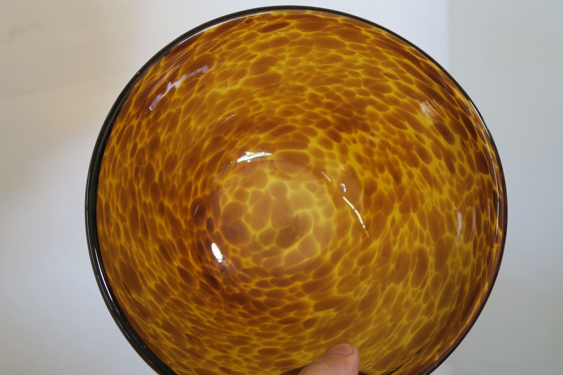 Round Glass Brown Swirl Pattern Bowl, 8" Diameter