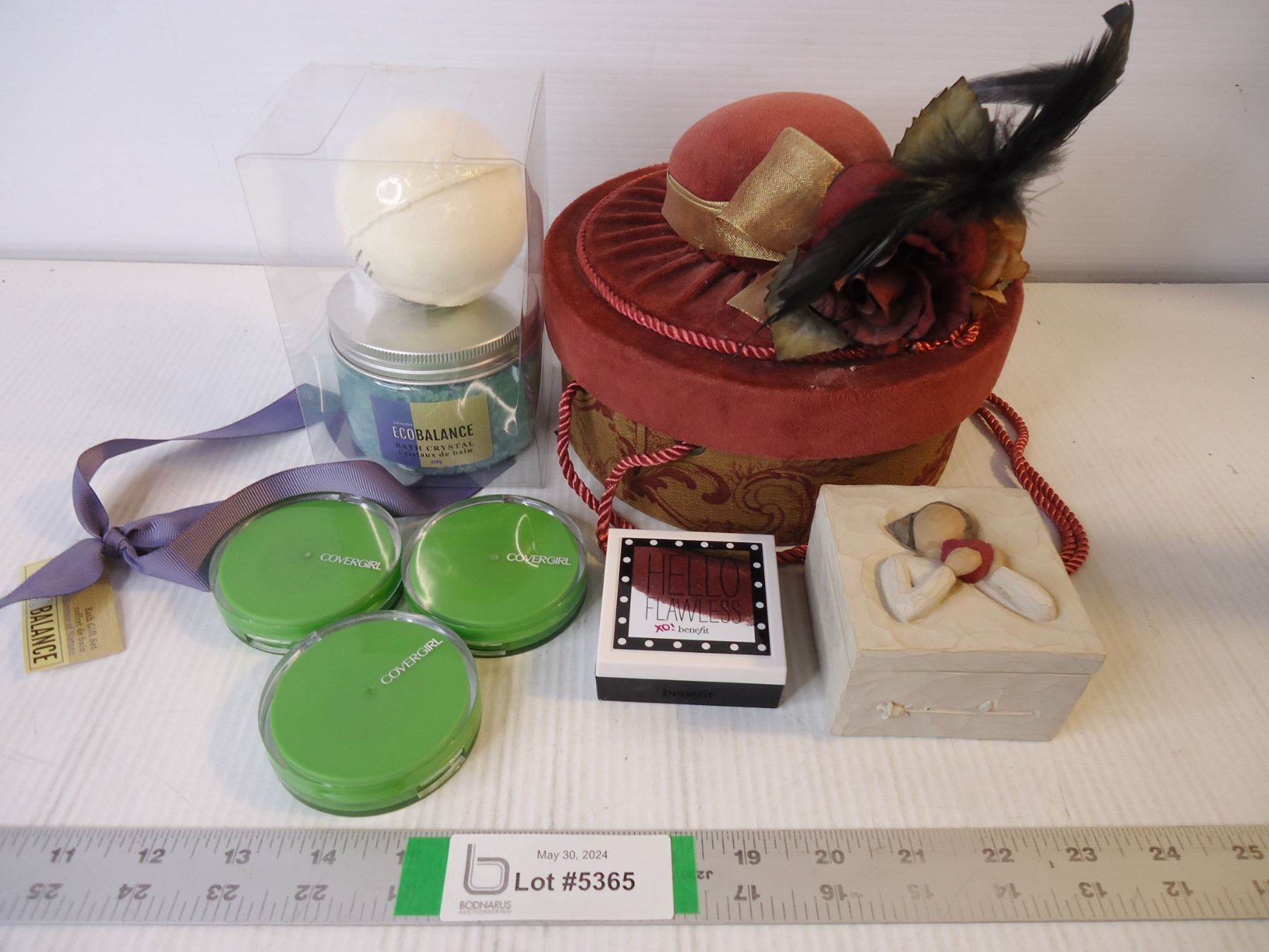 Round Jewelry Box, Trinket Box,(4) Makeup and Bath Crystals