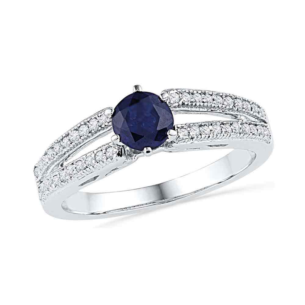 REF-14Y5X - SKU: GD100226 ---- Round Lab-Created Blue Sapphire Solitaire Split-shank Ring 1/5 Cttw 10kt White Gold