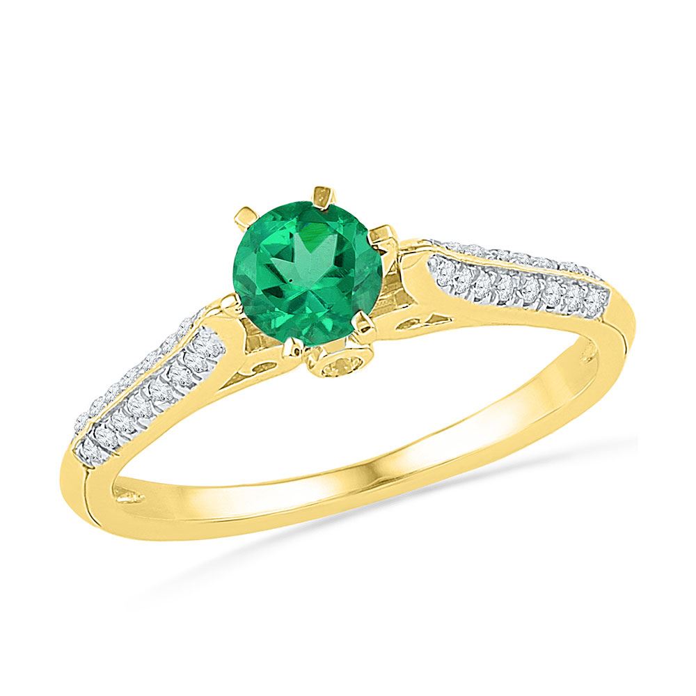 REF-20M9X - SKU: GD101188 ---- Round Lab-Created Emerald Solitaire Diamond Ring 5/8 Cttw 10kt Yellow Gold