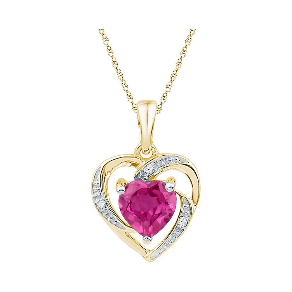 REF-6W4H - SKU: GD106483 ---- Round Lab-Created Pink Sapphire Heart Pendant 1.00 Cttw 10kt Yellow Gold