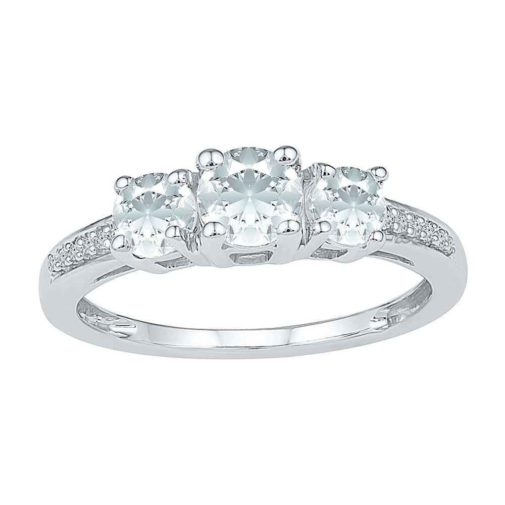 REF-20K0R - SKU: GD100598 ---- Round Lab-Created White Sapphire 3-stone Ring 1-3/8 Cttw 10kt White Gold