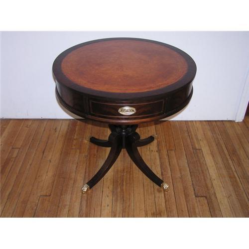 <tr><td>Title:Round Leather Top Mahogany Pedestal Table</td></tr>