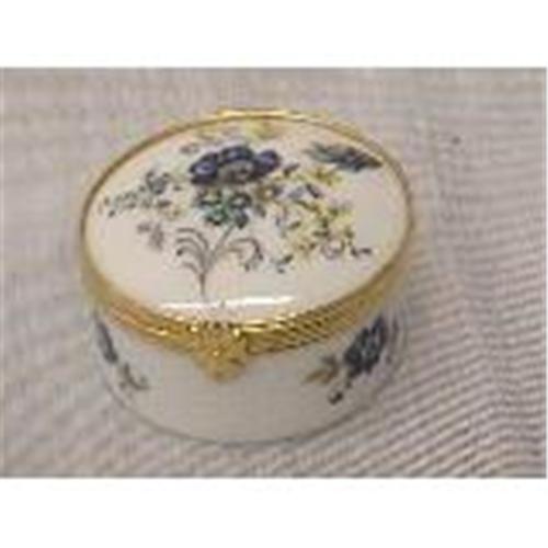 <tr><td>Title:Round Limoges Porcelain Pill Box</td></tr>