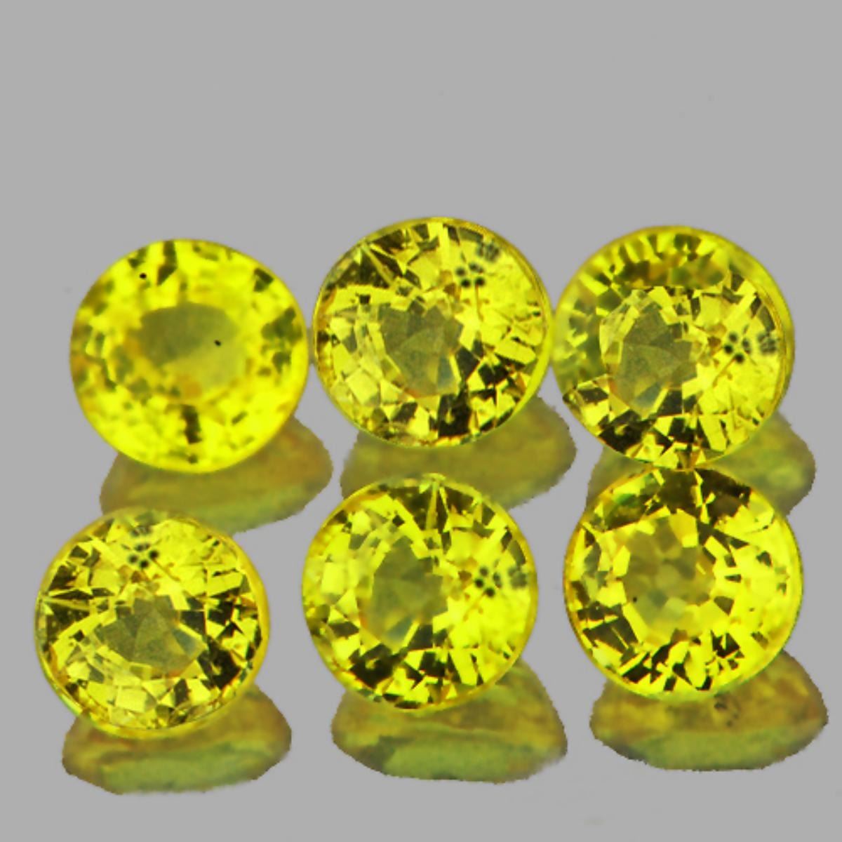 Round Natural Intense Canary Yellow Sapphire; WEIGHT : 1.50 Carats SHAPE : Round SIZE ( L x W x D ) : 3.00 mm QUANTITY : 6 pieces COLOR : Intense Canary Yellow CLARITY : IF-VVS1 ORIGIN : Ceylon HARDNESS : 9 LUSTER : Excellent!!!