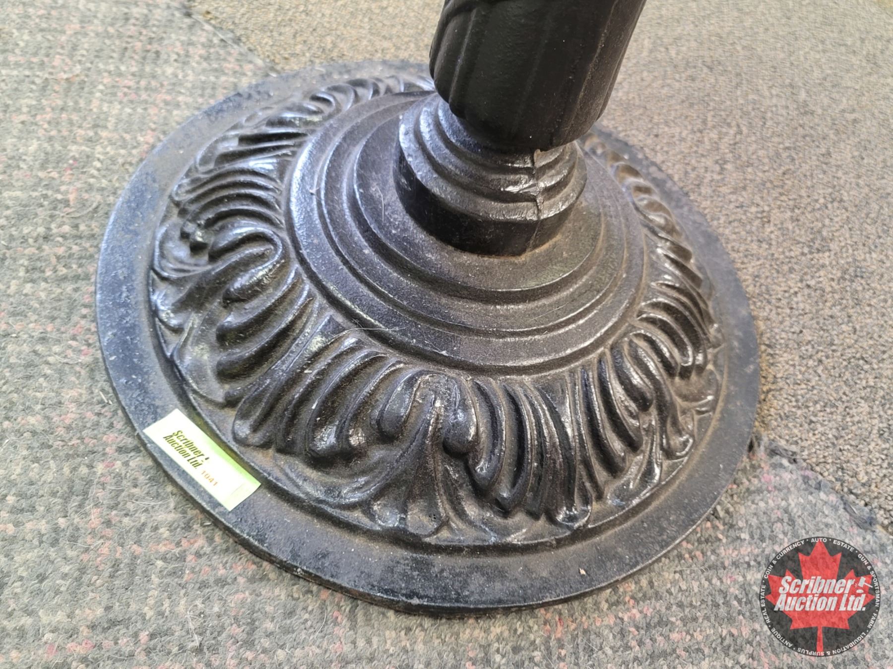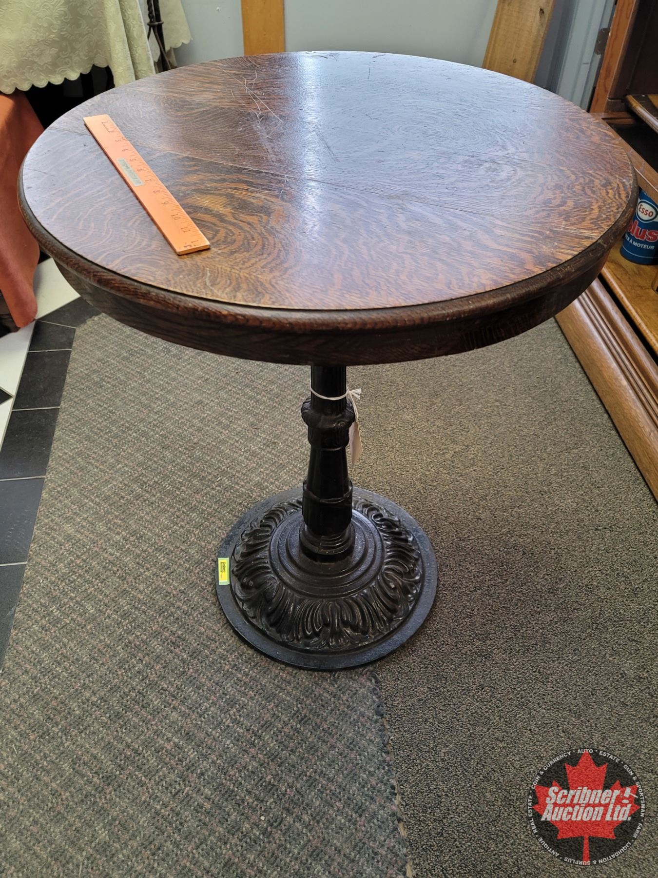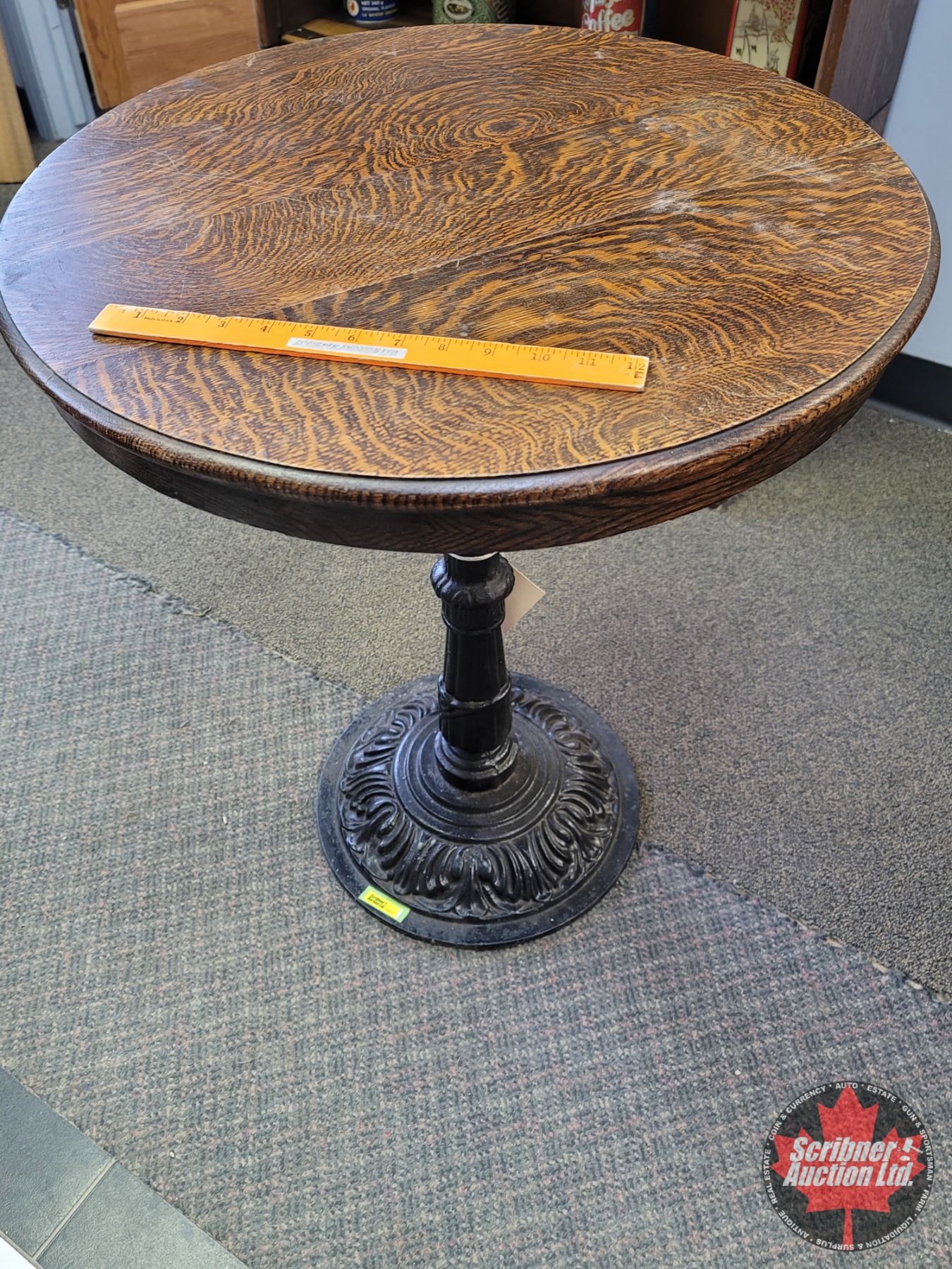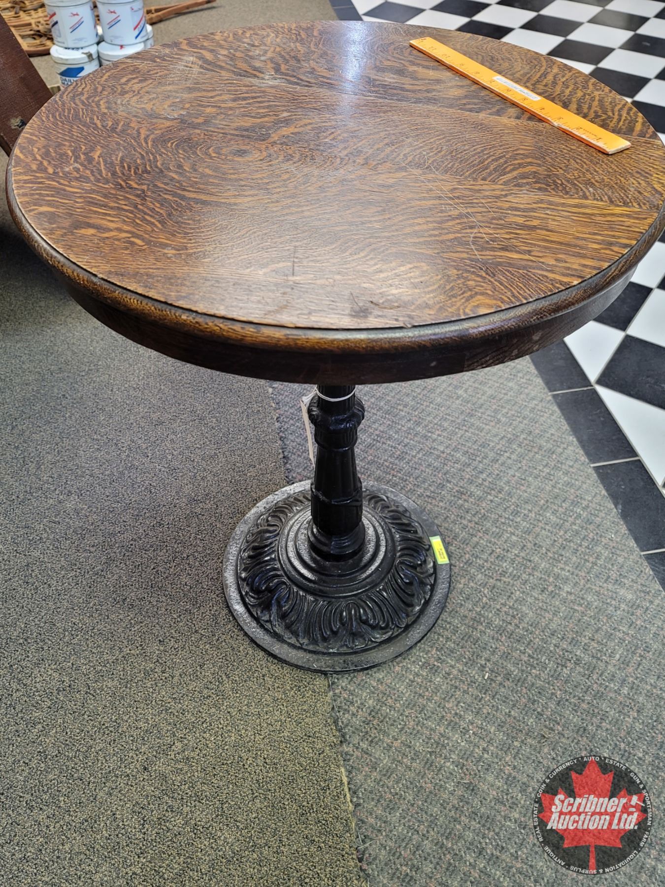 Round Oak Top / Cast Iron Base Pedestal Table (29"H x 24" Dia) (SEE PICS!)