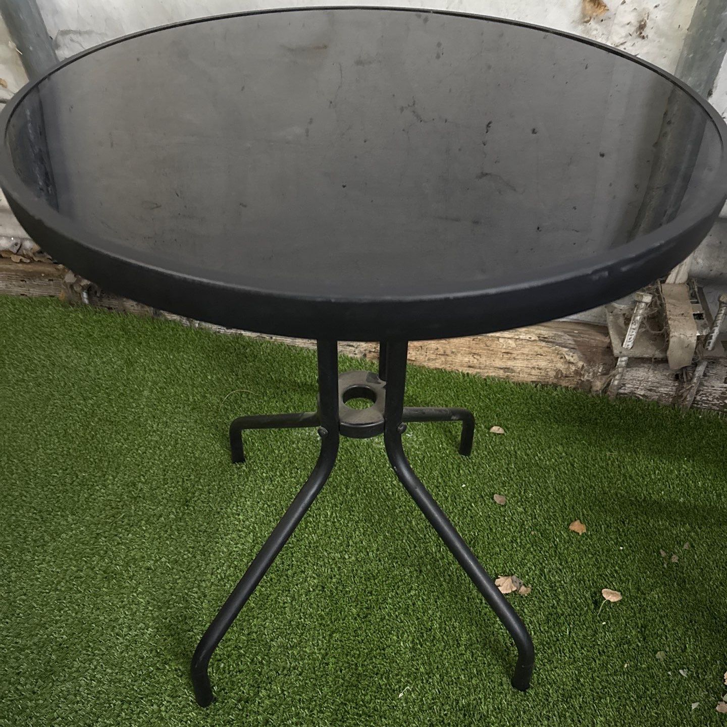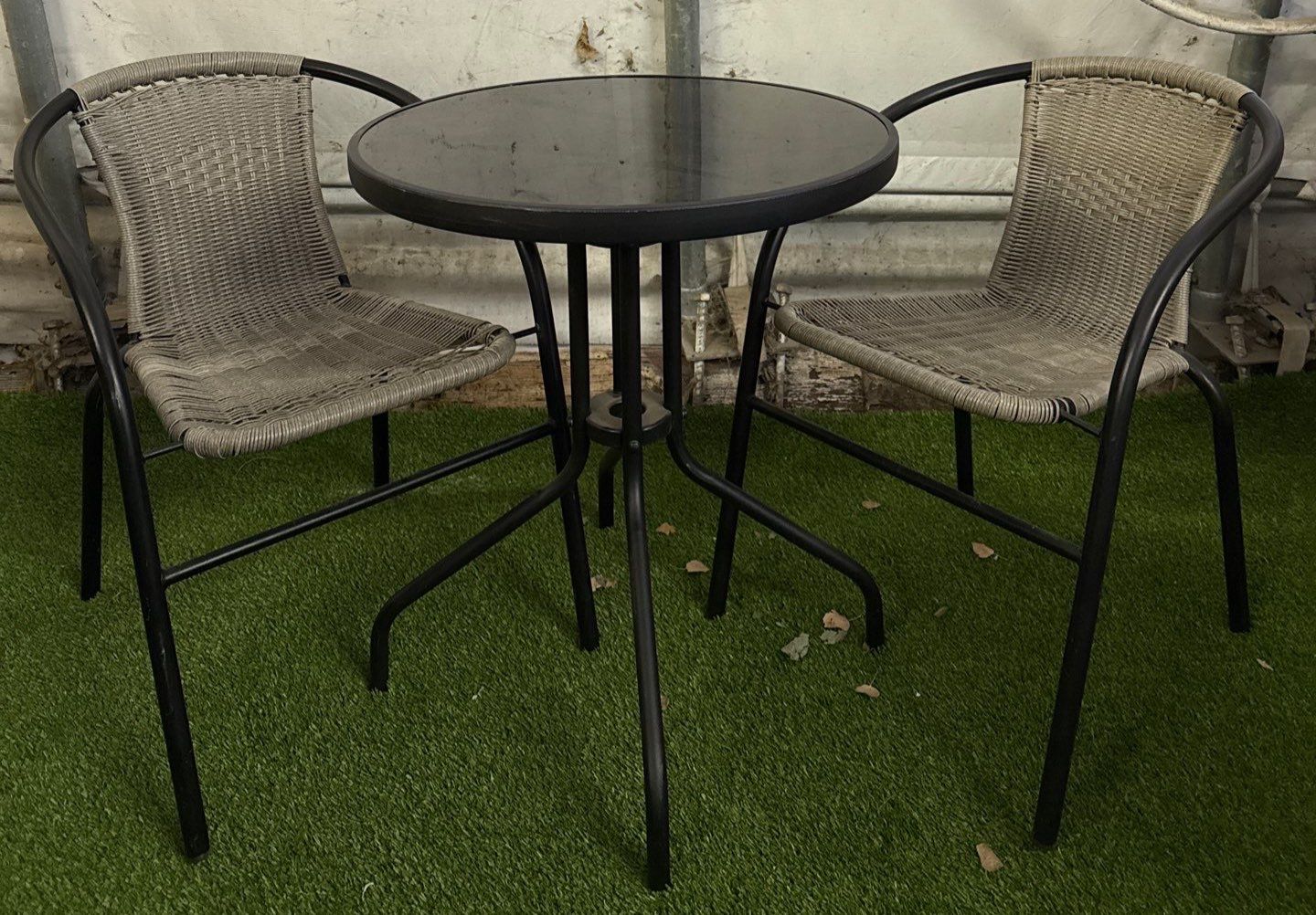 Round Outdoor Bistro Style Table w/Two Wicker Chairs & Metal Matte Frame