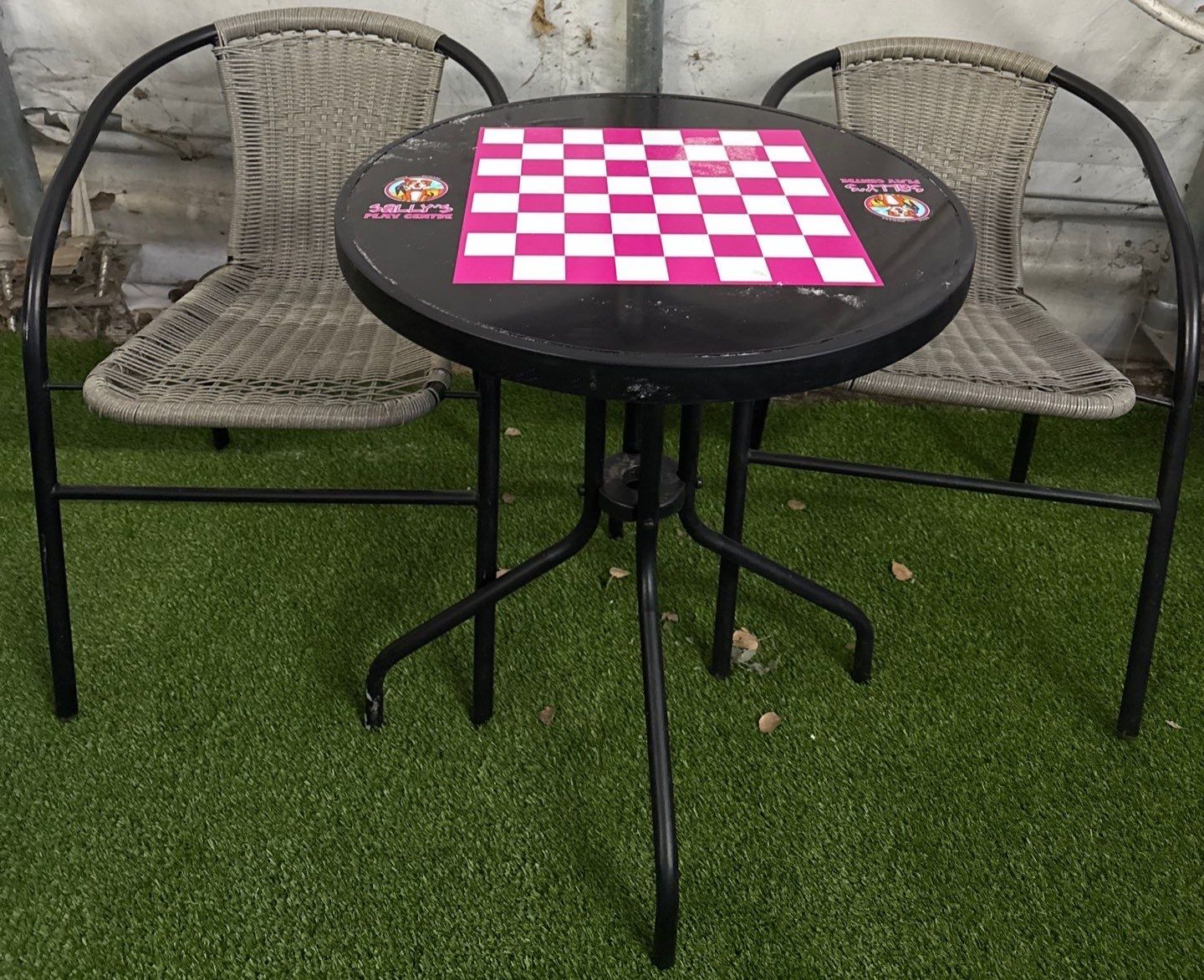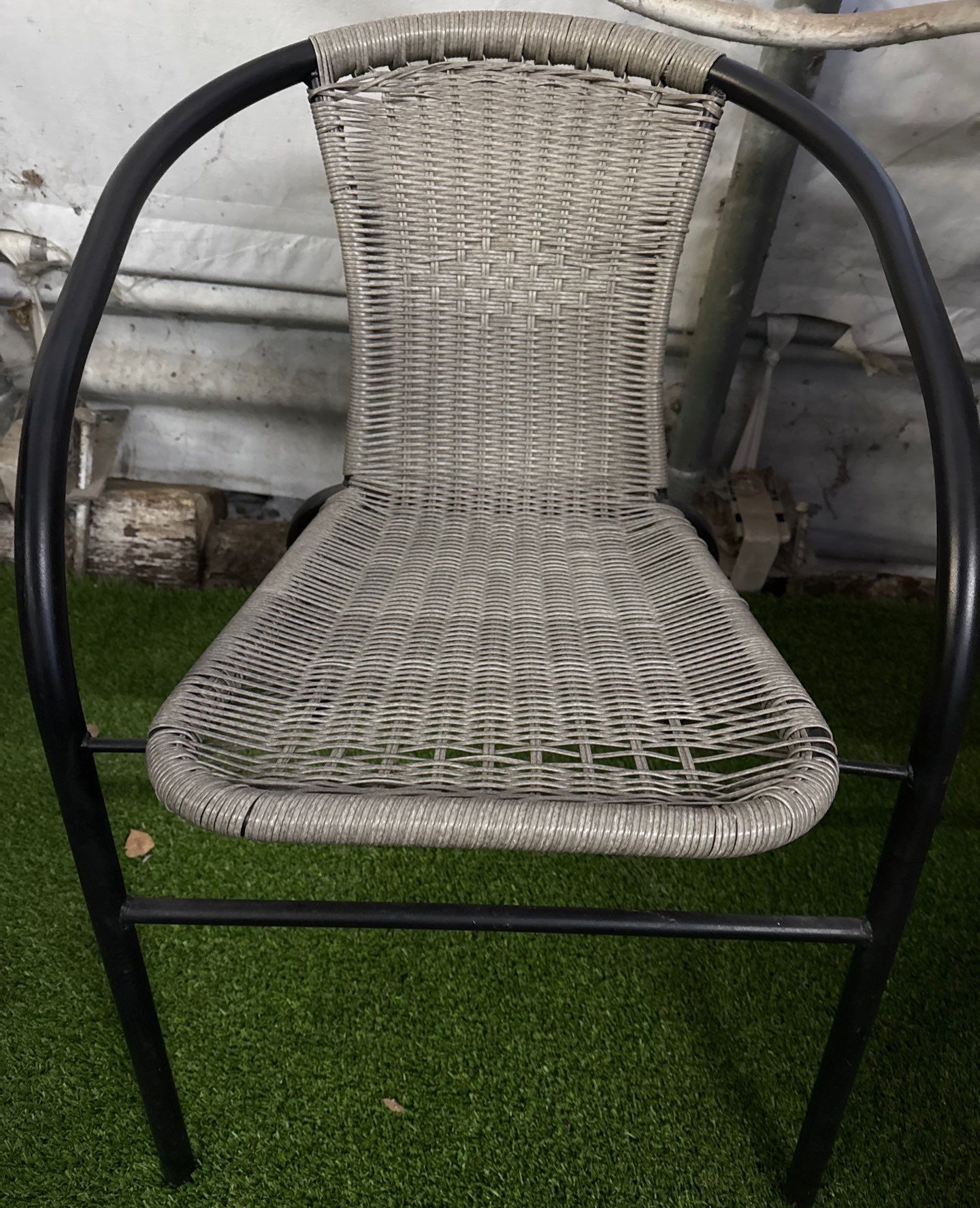 Round Outdoor Bistro Style Table w/Two Wicker Chairs & Metal Matte Frame